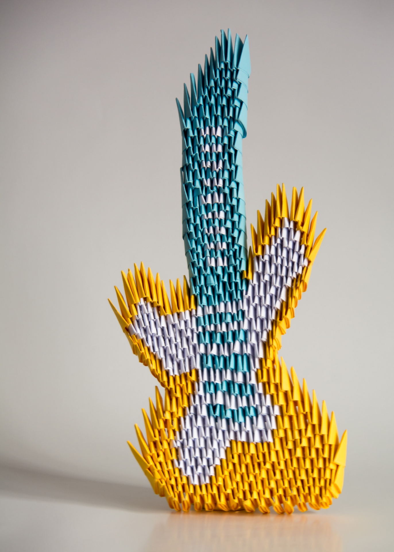 Anlässlich meines 50. Geburtstags wurde ich mit einem außergewöhnlichen Geschenk überrascht: einer Gitarre, die vollständig aus zahllosen kleinen Papierstücken kunstvoll zusammengesetzt war. Als leidenschaftlicher Musiker, der seit seiner Jugend in verschiedenen Bands gespielt hat, berührte mich dieses mit so viel Geduld und Liebe gefertigte Geschenk zutiefst. Die filigrane Handarbeit und die symbolische Bedeutung dieses Instruments rührten mich zu Tränen. Eine solch aufwendige Arbeit verdient es, in einer eigenen Galerie gewürdigt zu werden.